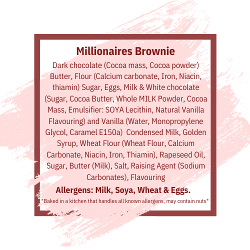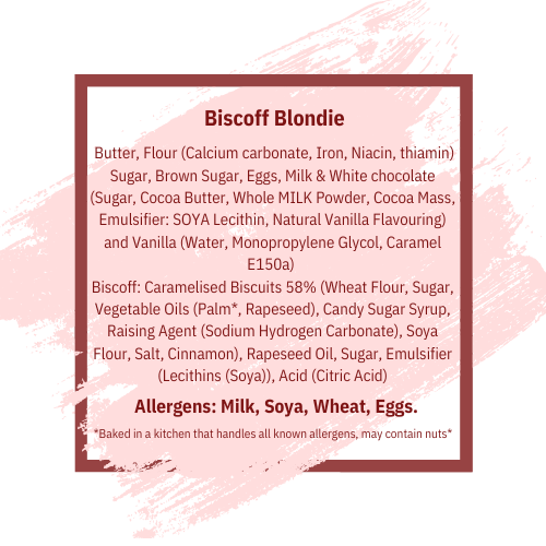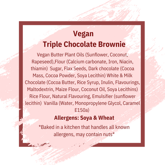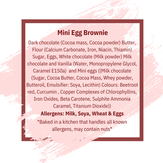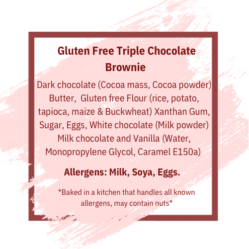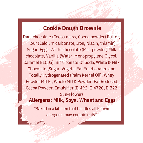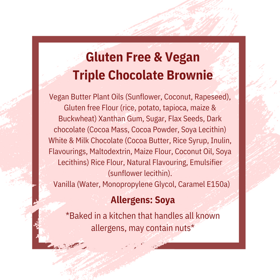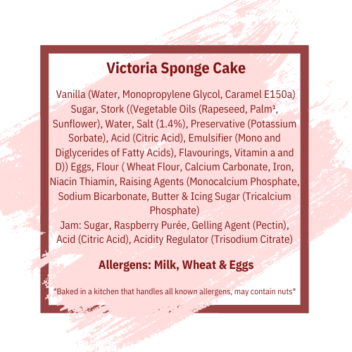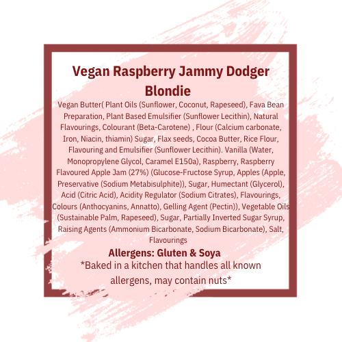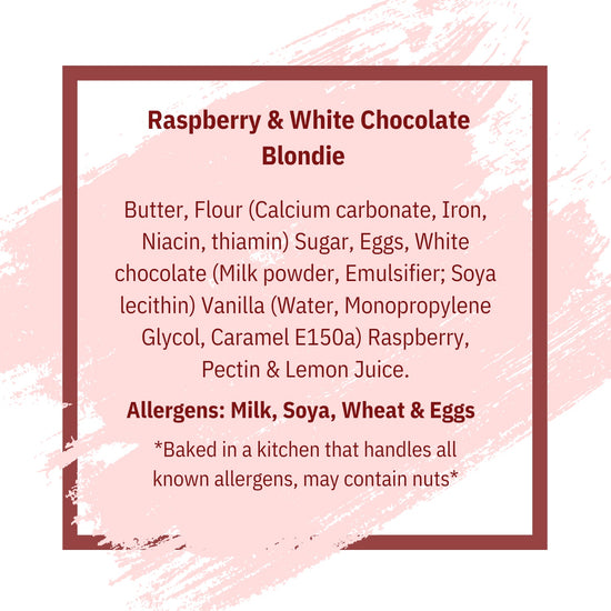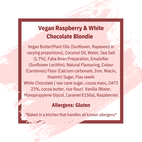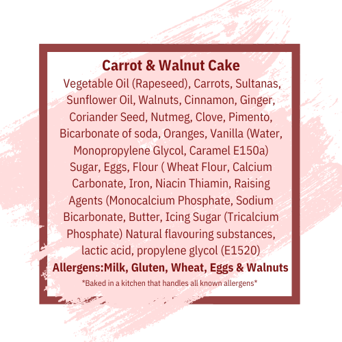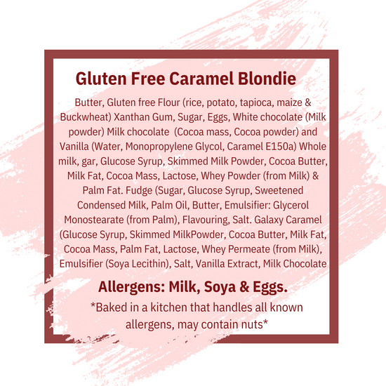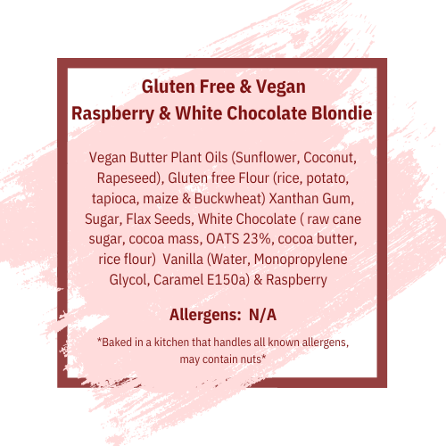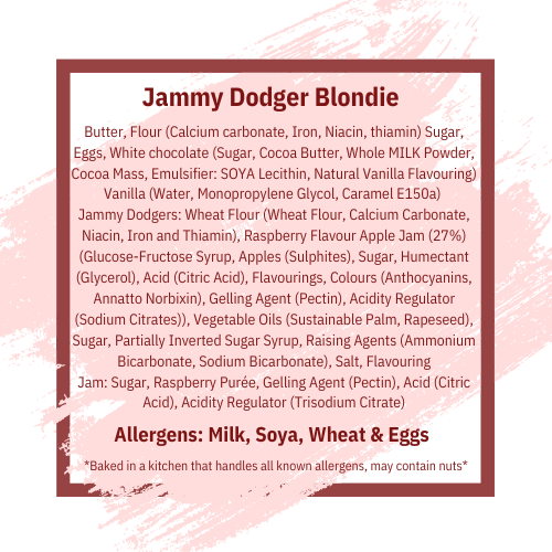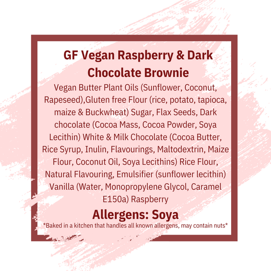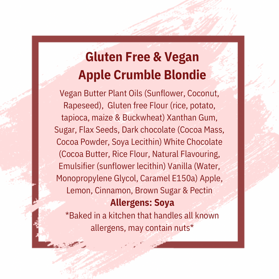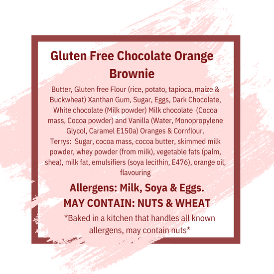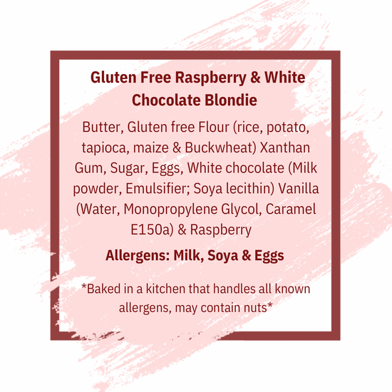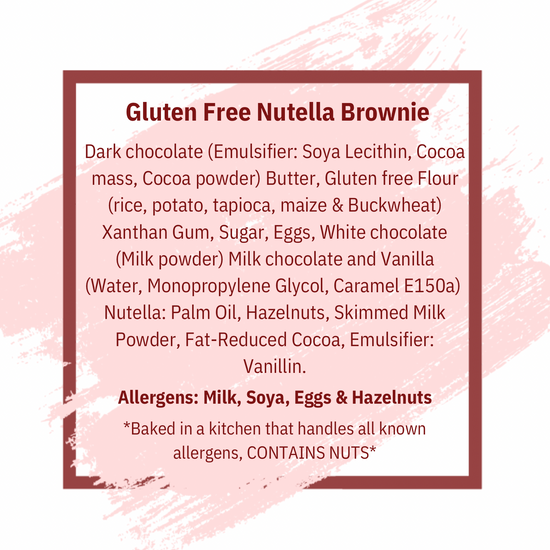 Our kitchen handles Gluten, Dairy, Eggs, Soya & Nuts. We cannot guarantee a product 100% free of these allergens although we try our best.