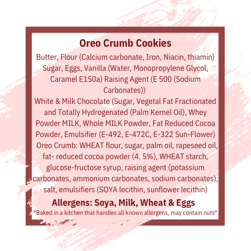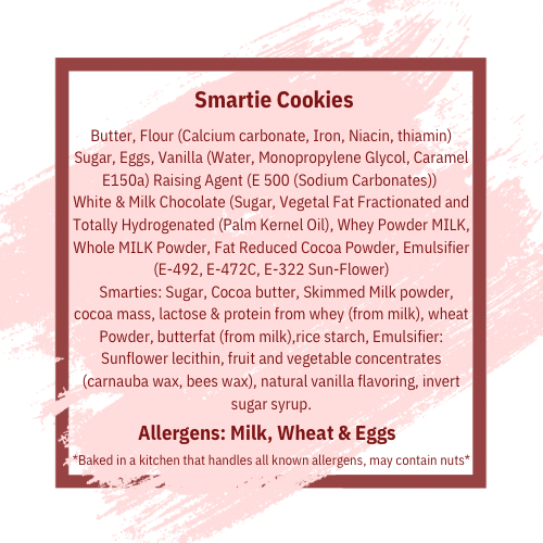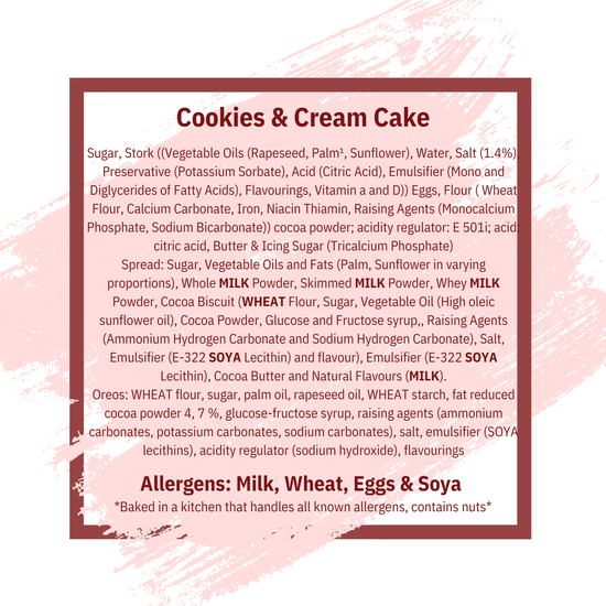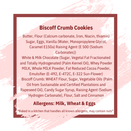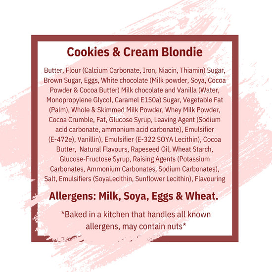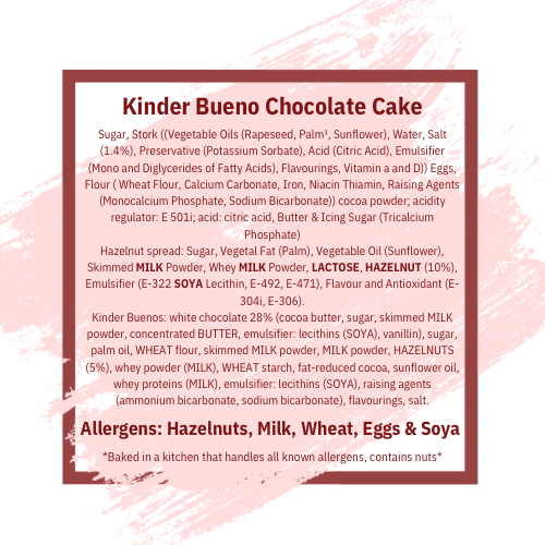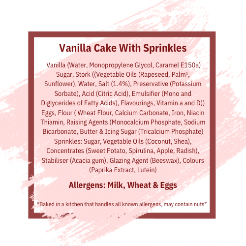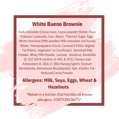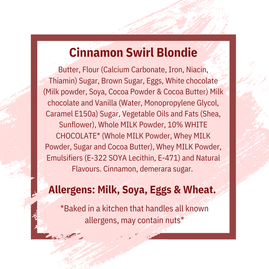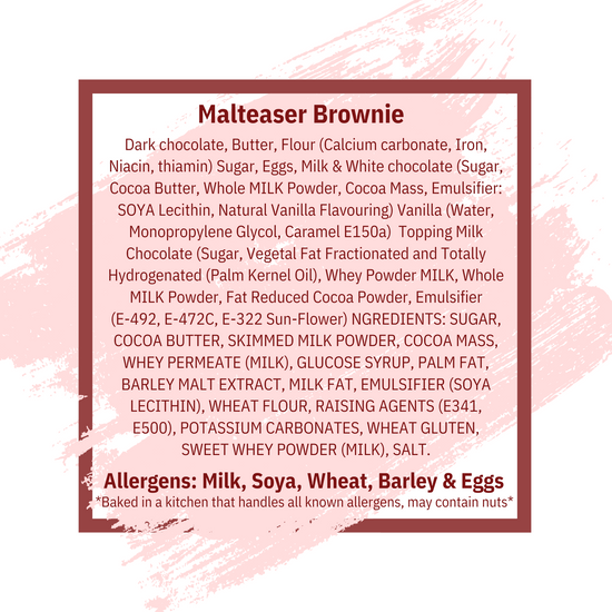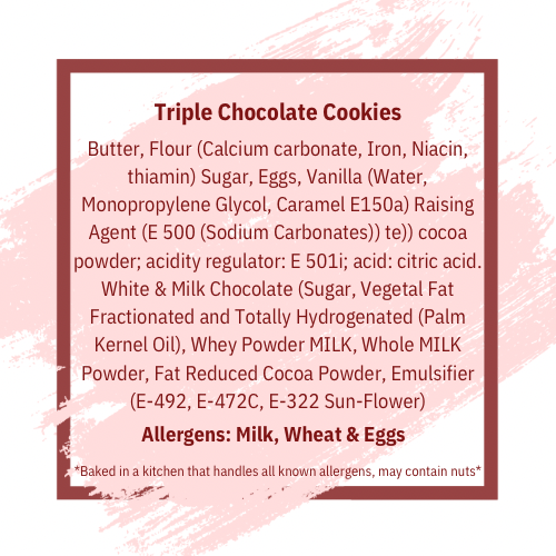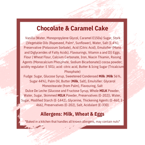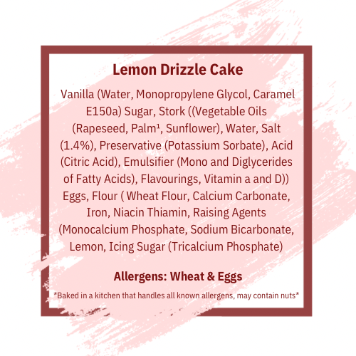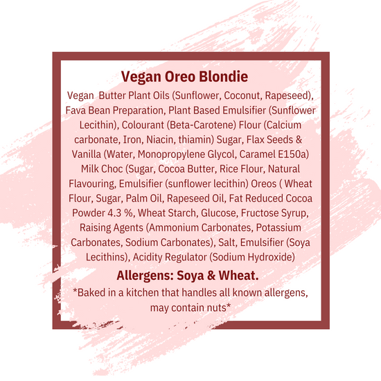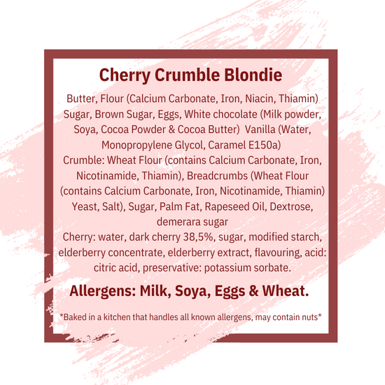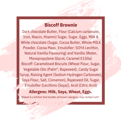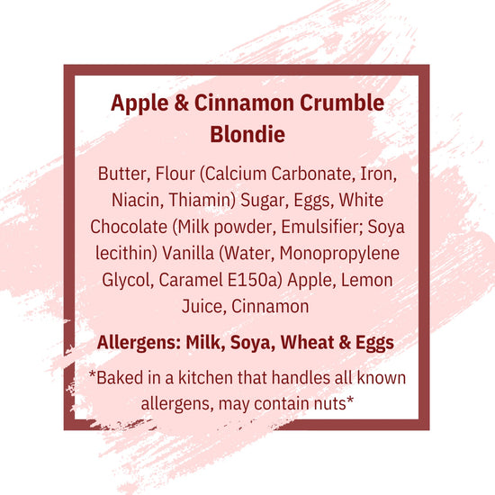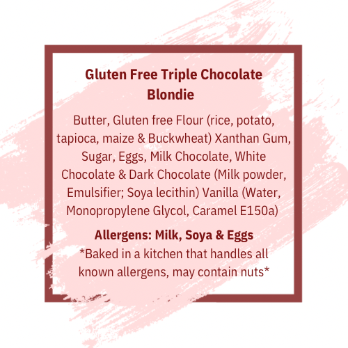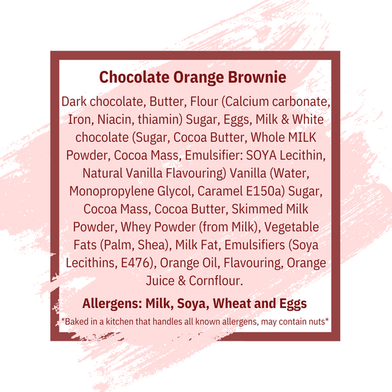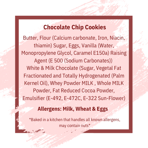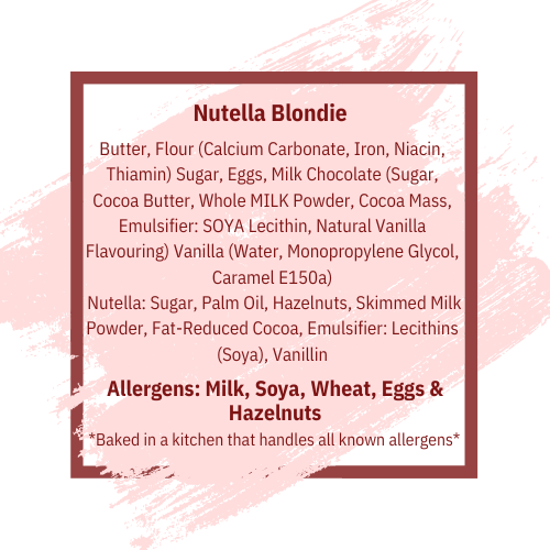 Our kitchen handles Gluten, Dairy, Eggs, Soya & Nuts. We cannot guarantee a product 100% free of these allergens although we try our best.